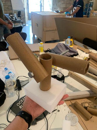 El proceso de la elaboración del proyecto fue a base de materiales reciclados de residuos de contenedores de arte del MACBA, se utilizaron telas, tubos de papel cartón, espuma que protegía los cuadros, tubos de PVC, cartón caja y naturaleza.